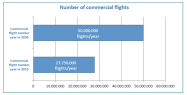 In the same study, it is also said that the number of commercial flights could double from 2010 to 2030: