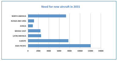 a) Over the next twenty years it is estimated that it will be necessary to incorporate 34000 new aircraft, distributed by regions in the following way: