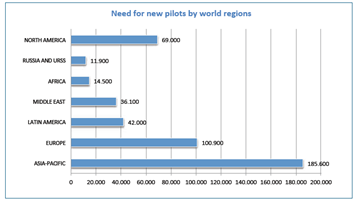 As it can be observed, Europe is the second region, after Asia, that most will need new pilots in the following years, and therefore more flight schools.
