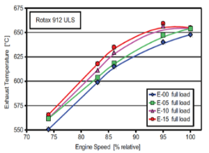 c)Bioethanol: The ROTAX 912iSc is also certified to operate with gasolina blended with 10% etanol. This mixture receives the name of Ethanol E10. If the etanol is obtained by the means of biomass conversion, the fuel is called Bioethanol. It presents several advantages but also disadvantages when compared to regular MOGAS. On the one hand, the ethanol contained in the mixture absorbs water, maintaining a very low humidity level in the fuel and engine system. The ethanol also increases the octane rating of the fuel, allowing greater compression rates or operating with fuel-air mixtures closer to the stoichiometric one. Furthermore, operation with Bioetanol produces less Greenhouse Effect Gases compared to operating the same engine with MOGAS, as will be discussed later. On the other hand, Biofuel can potentially be more corrosive to metals and composite materials than regular fuel. This phenomenon occurs if the biofuel absorbs too much humidity. At high quantities, a dissociation of the mixture may occur, leading to an accumulation of a water-ethanol compound at the bottom of the fuel tank, pumps, gauges etc. This compound is highly corrosive. Studies have been carried out to develop mechanisms to drain this mixture from fuel tanks. EASA carried out a study of the implementation of Bioetanol in various engines commonly installed in light and very light aircraft. One of the models was the ROTAX 912 ULS from the same family as the 912 iSc: